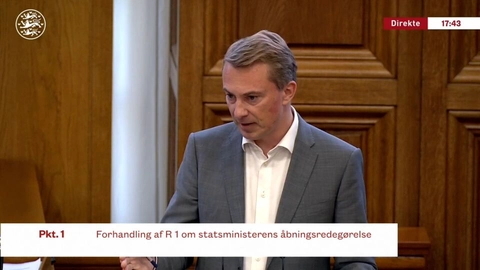 Derfor: Lad os nu fremlægge et borgerligt projekt, hvor vi viser, hvad vi kan, hvor vi sætter en ny retning, og hvor vi frigør os fra de ting, som har skabt udfordringerne, vi kommer til at løse. Jeg rækker hånden ud i dag som formand for Dansk Folkeparti. Vi vil gerne et samarbejde. Jeg er sikker på, at der er mere, der forener os, end der deler os. På udenrigspolitikken, hvor venstrefløjen ikke engang vil tage stilling til, hvem de holder med, efter Iran har angrebet Israel, på skolepolitikken, hvor vi gerne vil stive lærerne af og sende uromagerne uden for døren, og på rigtig mange områder kan vi noget sammen, men vi er nødt til at gøre det med en frisk start og kunne love danskerne, at det er en ny begyndelse. Jeg er klar, og jeg håber, at I tager imod den fremstrakte hånd. Tak, formand.