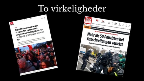 DR forvrænger de ”højreekstreme” i AfDGunnar Svendsen fremdrager et nyt eksempel på DR-virkeligheden. Med sit sædvanlige snuptag forvandler DR virkeligheden til ukendelighed. Det er så grelt, at borgerne står med to virkeligheder: den statsfinansierede og den private.